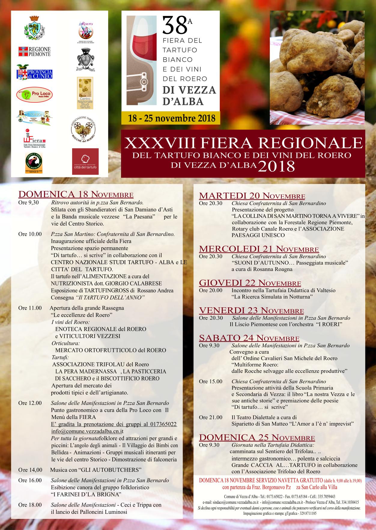 XXXVIII FIERA REGIONALE DEL TARTUFO BIANCO E DEI VINI DEL ROERO DI VEZZAD’ALBA