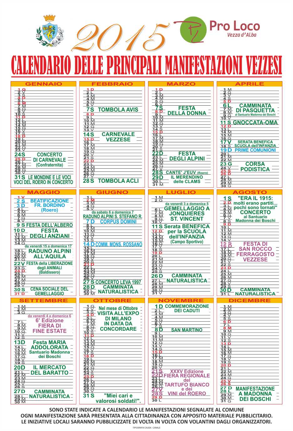 CALENDARIO MANIFESTAZIONI ANNO 2015