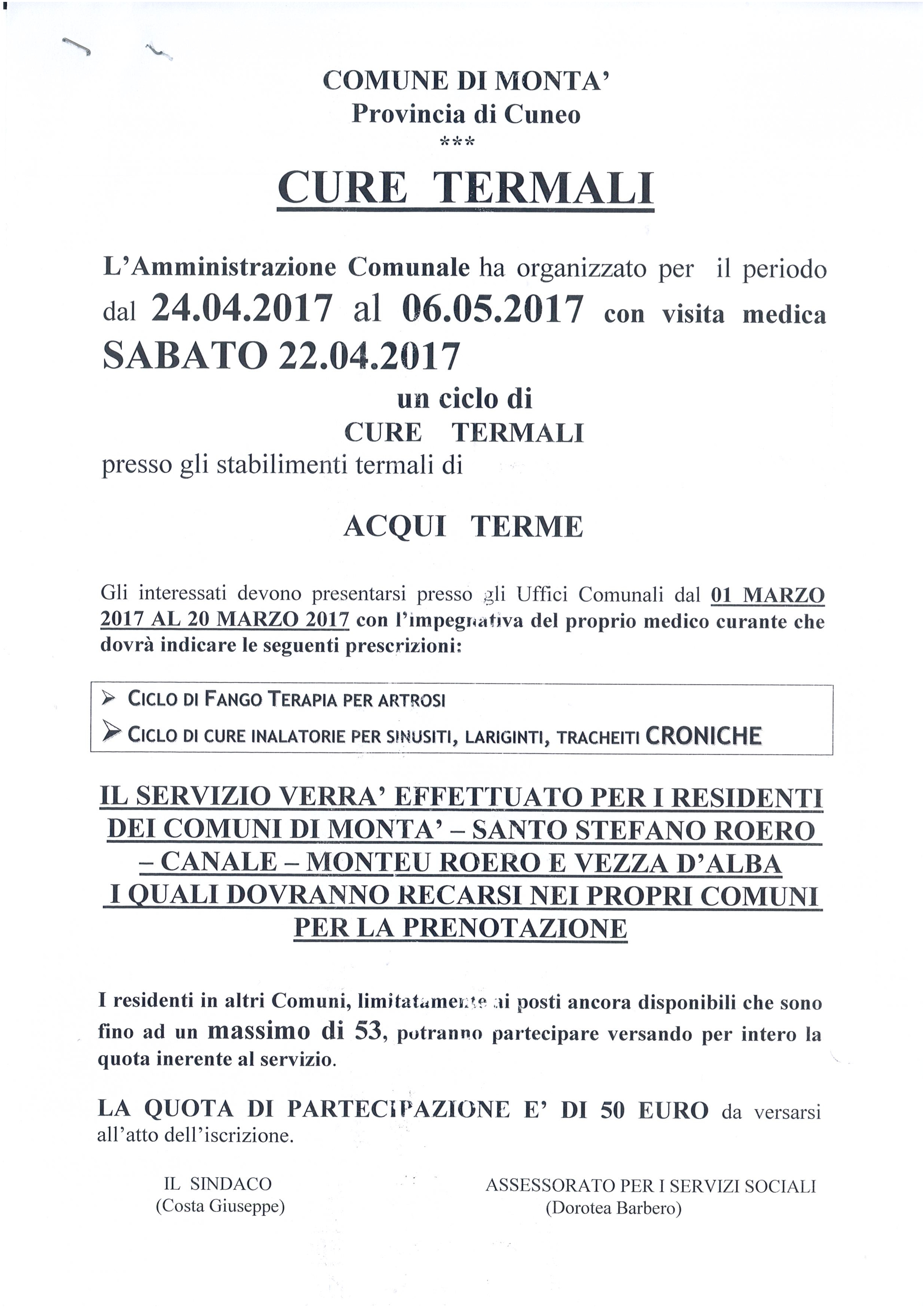 CURE TERMALI DAL 24/04 AL 6/05 2017