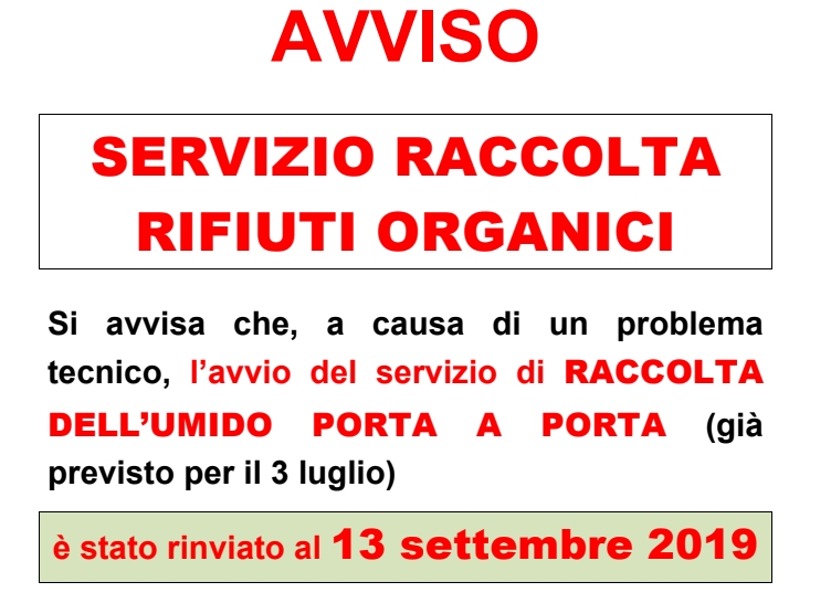 Si avvisa che, a causa di un problema tecnico, l’avvio del servizio di RACCOLTA