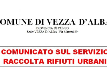 COMUNICATO SUL SERVIZIO RACCOLTA RIFIUTI URBANI