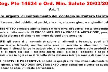 Nota Reg. Pte 14634 e Ord. Min. Salute 20/03/2020