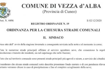 ORDINANZA CHIUSURA STRADE COMUNALI