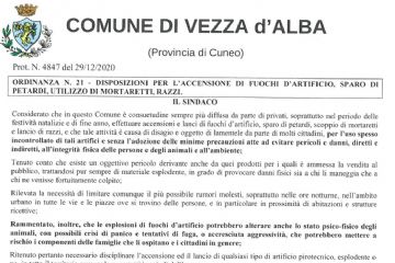 ORDINANZA SINDACALE N. 21 Disposizioni per l'accensione fuochi d'artificio