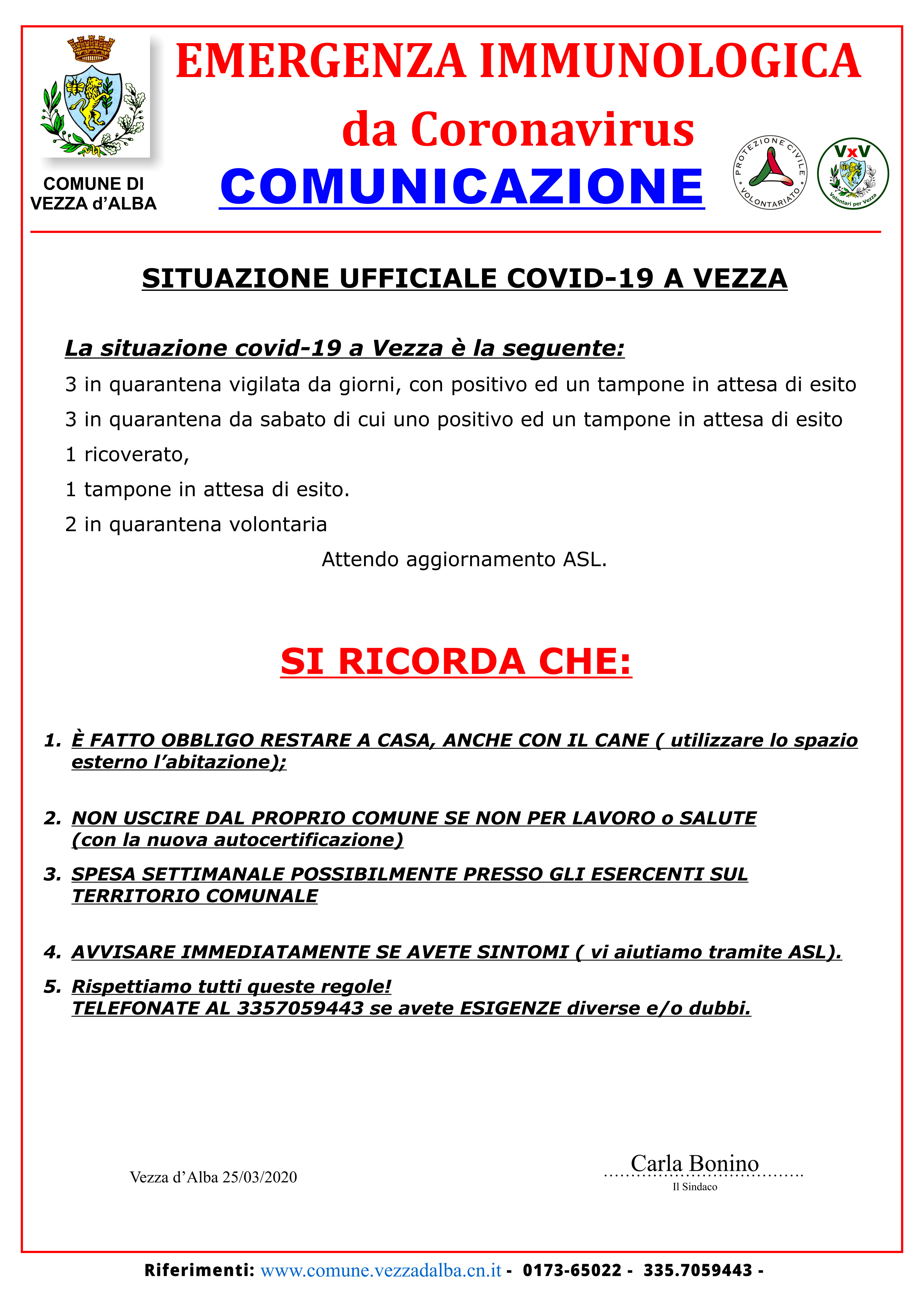 La situazione covid-19 a Vezza è la seguente: