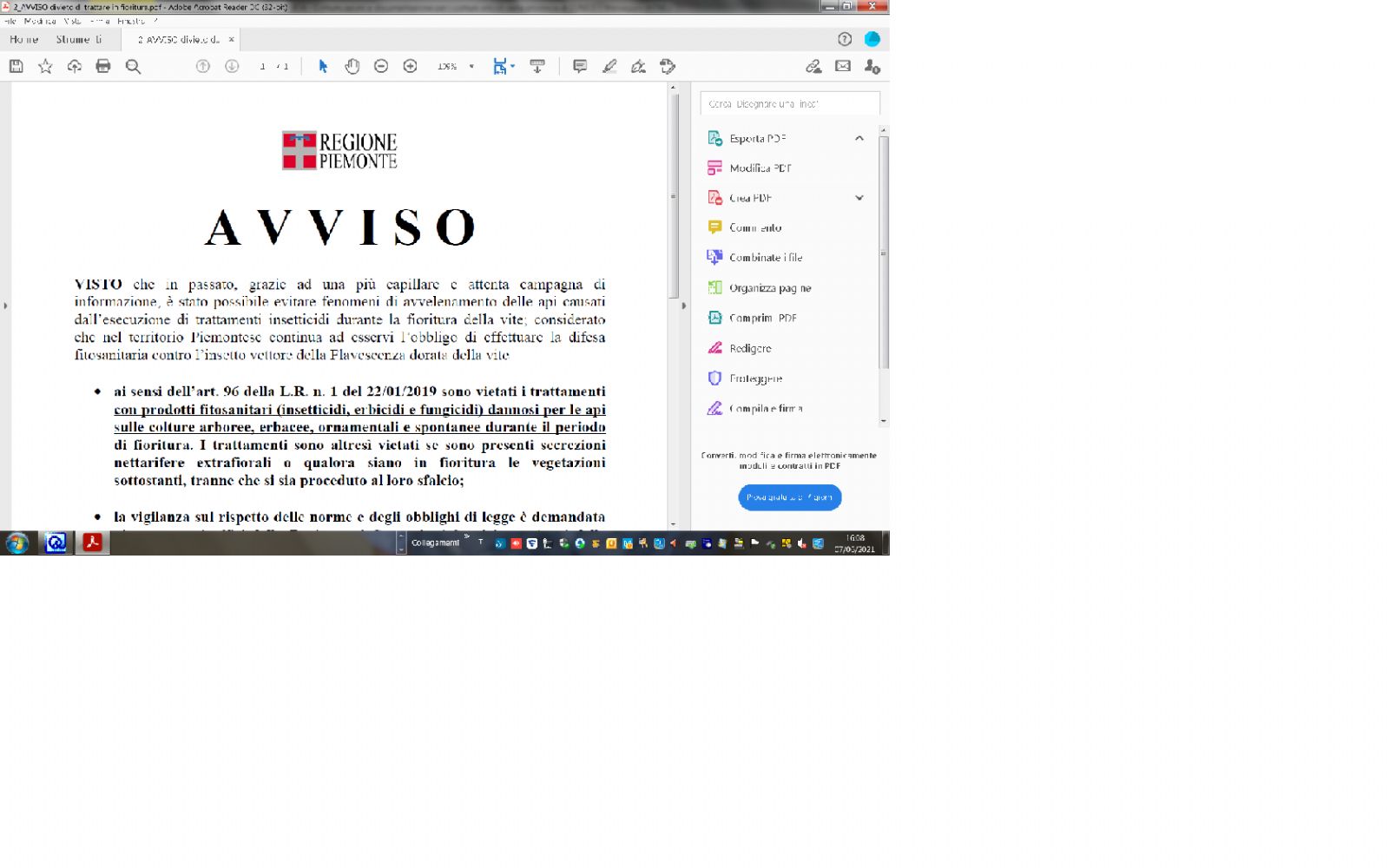 La Regione Piemonte ha invitato i Sindaci a dare massima diffusione all’Avviso relativo al divieto di trattamenti in fioritura al fine di salvaguardare le api e gli insetti pronubi.