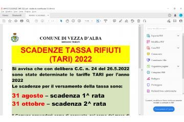 TARIFFE TARI 2022 - SCADENZE VERSAMENTO