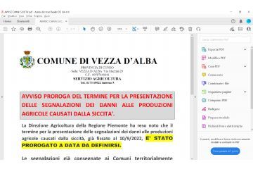 DANNI ALLE PRODUZIONI AGRICOLE CAUSATI DALLA SICCITA'- PROROGA TERMINE PRESENTAZIONE SEGNALAZIONI
