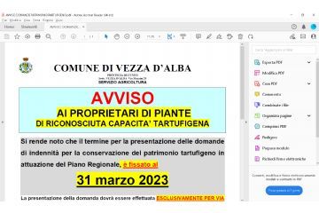 ULTERIORE PROROGA TERMINE DI PRESENTAZIONE DELLE DOMANDE DI INDENNITA' PER LA CONSERVAZIONE DEL PATRIMONIO TARTUFIGENO