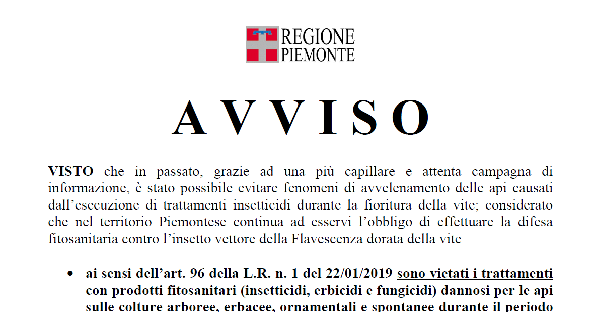 comunicazioni importanti del settore fitosanitario della Regione Piemonte
