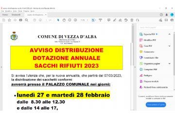 AVVISO DISTRIBUZIONE DOTAZIONE ANNUALE SACCHI RIFIUTI 2023