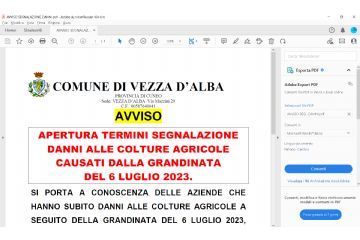 APERTURA TERMINI SEGNALAZIONE DANNI ALLE COLTURE AGRICOLE CAUSATI DALLA GRANDINATA DEL 6 LUGLIO 2023