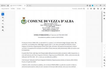 Avviso di pubblicazione di consultazione pubblica per adozione del PIAO 2024-2026 . Scadenza 5.1.2024