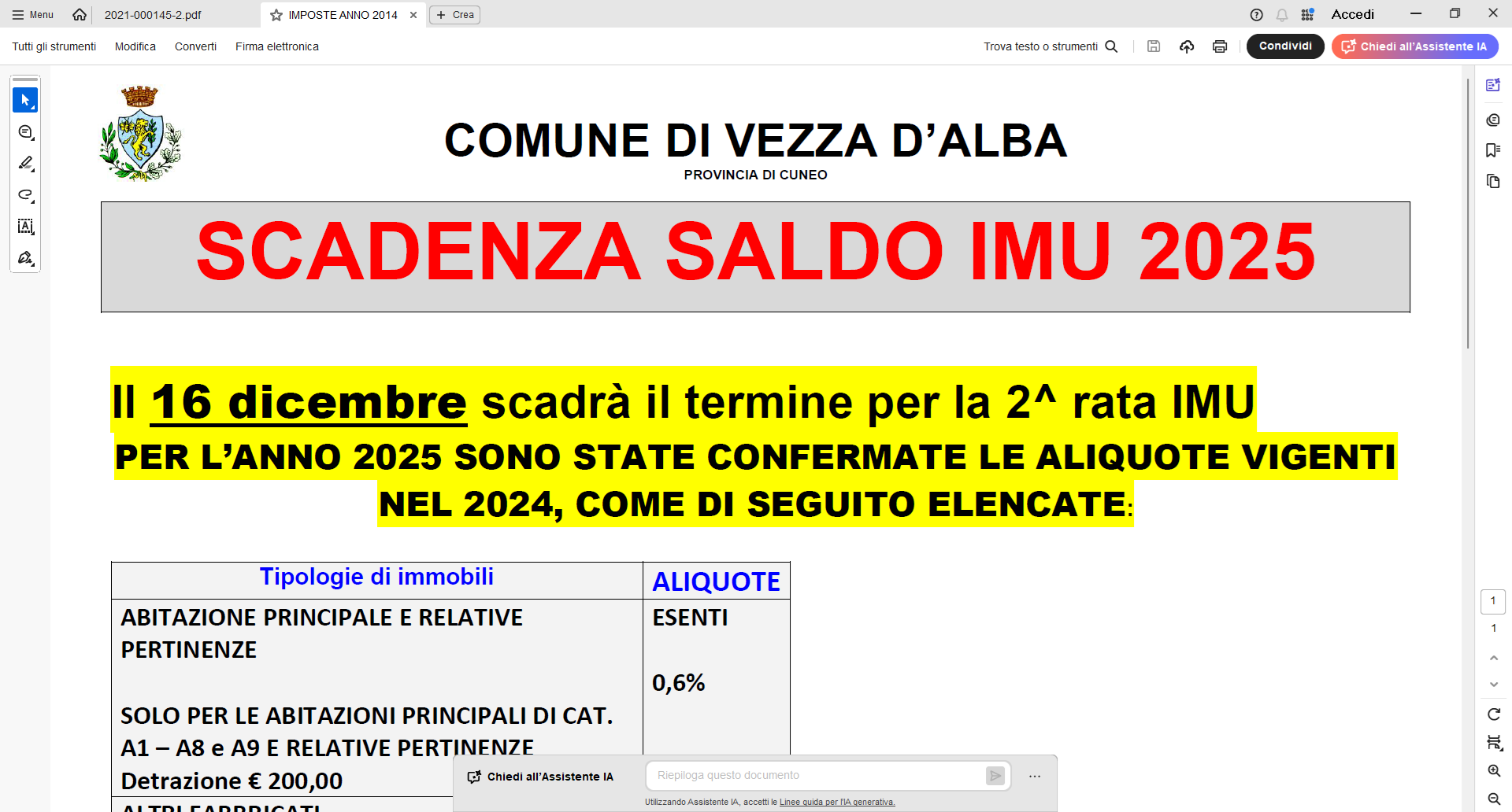 (N.B. : per il calcolo occorre inserire l’aliquota deliberata dal Comune ed il codice catastale L817 per Vezza d’Alba)