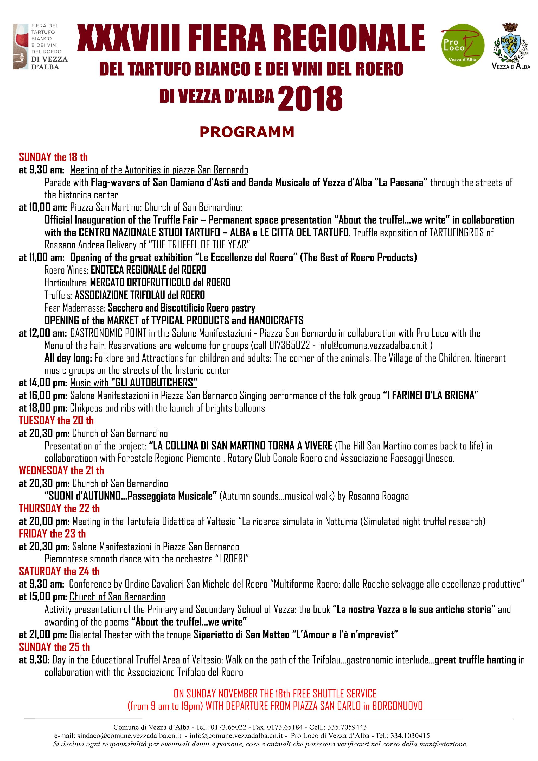 XXXVIII FIERA REGIONALE DEL TARTUFO BIANCO E DEI VINI DEL ROERO DI VEZZAD’ALBA