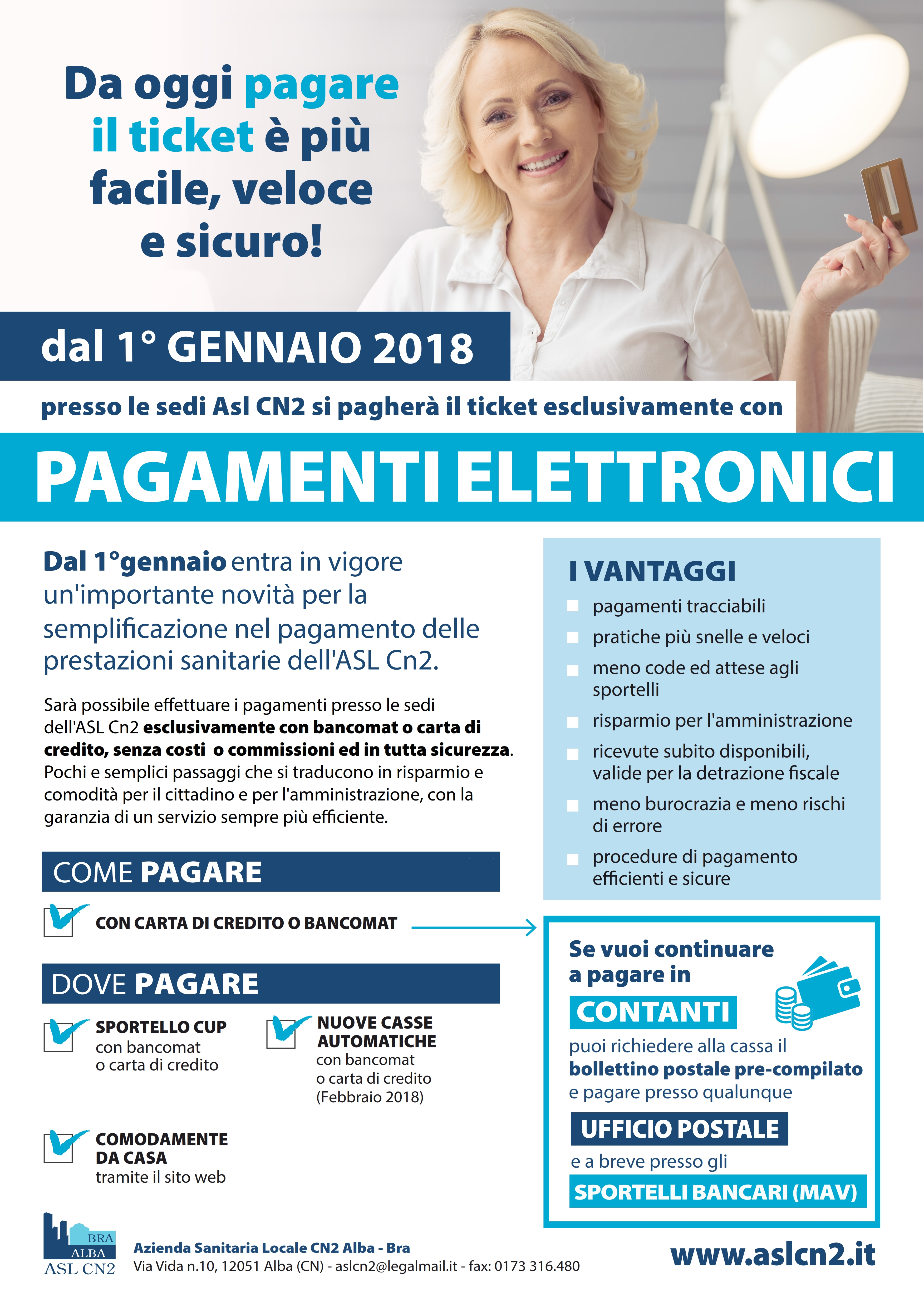 Dal 1°gennaio entra in vigore un'importante novità per la semplificazione nel pagamento delle prestazioni sanitarie dell'ASL Cn2.