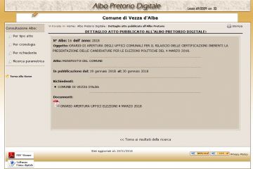 ELEZIONI POLITICHE DEL 04/03/2018 - ORARIO APERTURA UFFICI COMUNALI