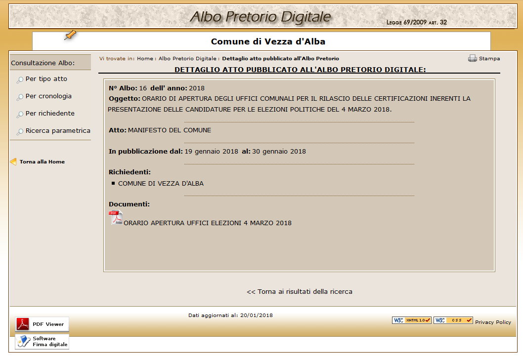 | Descrizione | È il punto di accesso dei Cittadini che vogliono conoscere l’attività amministrativa del Comune |