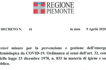 REGIONE PIEMONTE -Decreto n°41 del Presidente A. Cirio