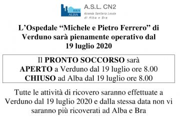 L’Ospedale “Michele e Pietro Ferrero” di Verduno sarà pienamente operativo dal 19 luglio 2020