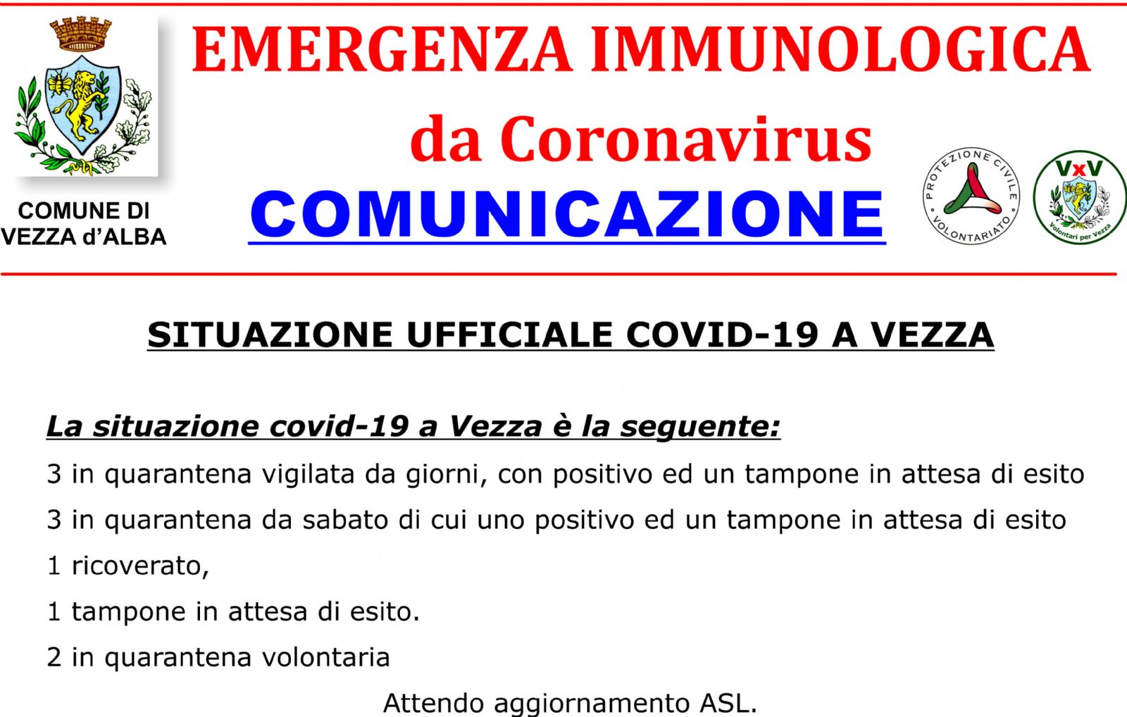 Attendo aggiornamento ASL.