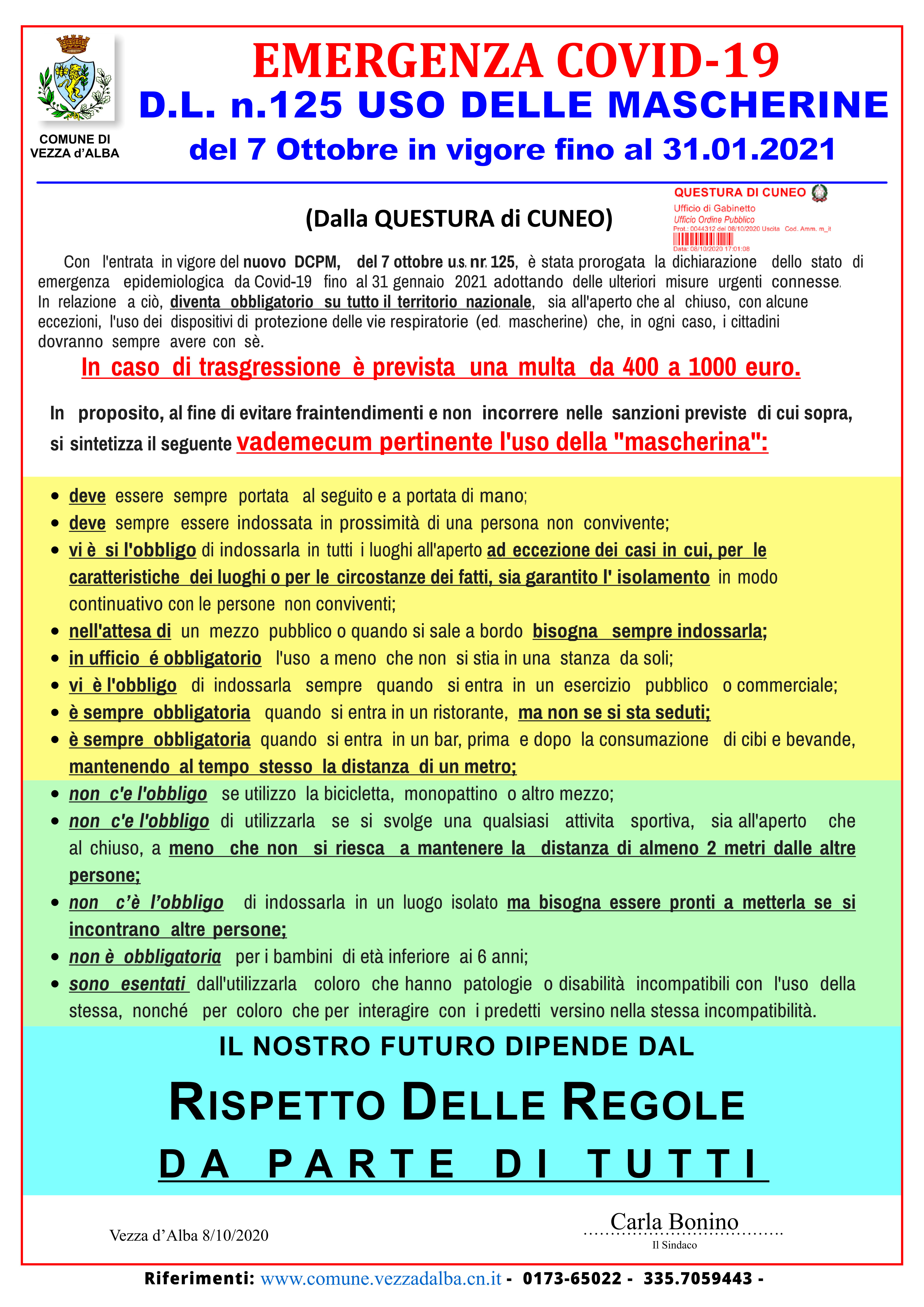 DPCM del 13 Ottobre (Schema riepilogativo) e INDICAZIONI sull' USO delle Mascherine