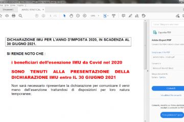 AVVISO TERMINE DI SCADENZA DICHIARAZIONE IMU PER ESENZIONE DA COVID NEL 2020