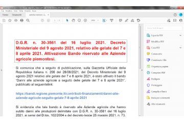 BANDO REGIONALE RISERVATO ALLE AZIENDE AGRICOLE PIEMONTESI CHE HANNO DUBITO DANNI A SEGUITO DELLE GELATE DEL 7 E 8 APRILE 2021