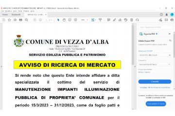 AVVISO DI RICERCA DI MERCATO PER L'AFFIDAMENTO DEL SERVIZIO DI MANUTENZIONE DEGLI IMPIANTI DI ILLUMINAZIONE PUBBLICA DI PROPRIETA' COMUNALE