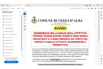 APERTURA TERMINI SEGNALAZIONI DANNI AI PRIVATI ED ALLE ATTIVITA' ECONOMICHE E PRODUTTVE NON AGRICOLE CAUSATI DALLA GRANDINATA DEL 6 LUGLIO 2023
