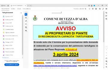Avviso per la presentazione delle domande di indennità per la conservazione del patrimonio tartufigeno.