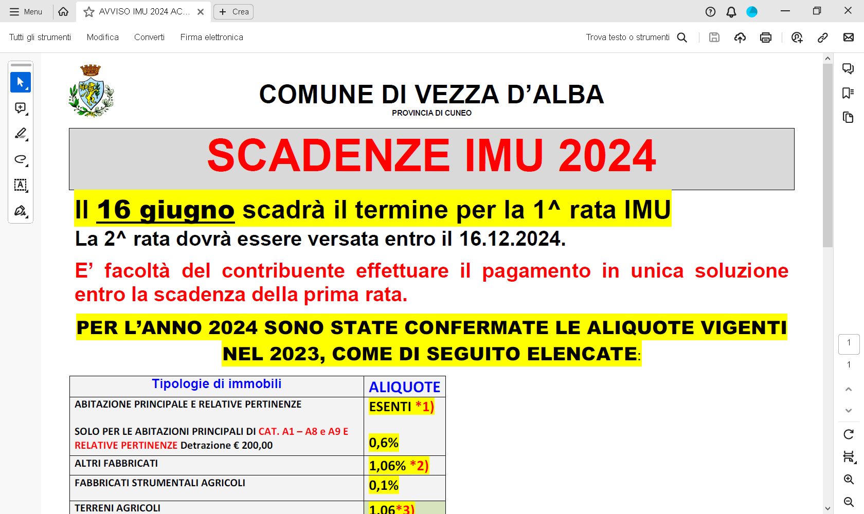 PER L’ANNO 2024 SONO STATE CONFERMATE LE ALIQUOTE VIGENTI NEL 2023, COME DI SEGUITO ELENCATE: